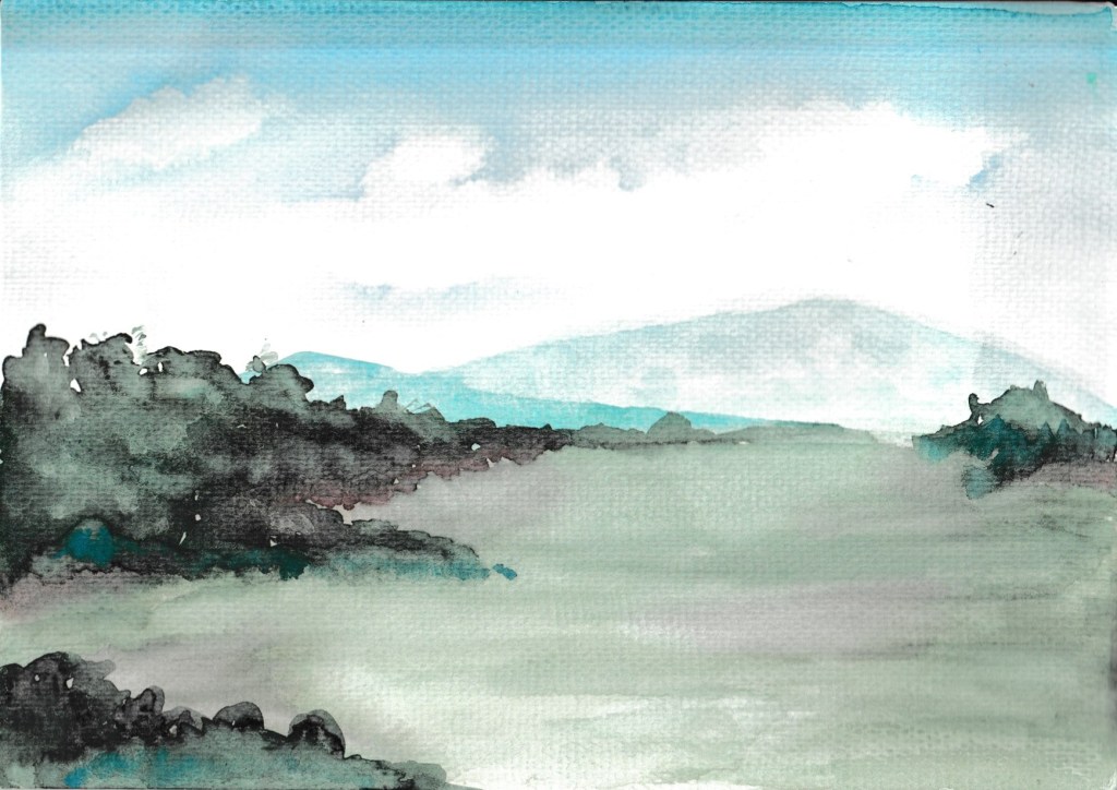 So, I did what I said I would and spent some time on landscapes. It turns out I’m not really interested in painting landscapes. I think this was a strong ‘should’ in my mind because ‘that’s what you do with watercolours. ‘ It seems it’s not what I do with watercolours, as is evident from the results.